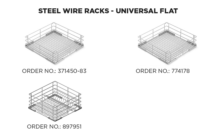 | 323989 | Universeel glazenrek 500 x 500 mm, hoge versie, met 4 aflopende rijen à 103 mm, kunststof coating, hoogte 180 mm (niet geschikt voor de Ecomax 502) |